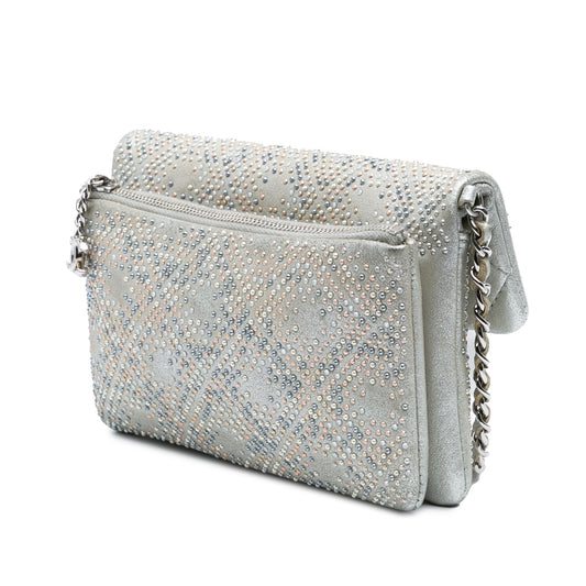 Chanel CC Iridescent and Studded Calfskin Flap Clutch on Chain